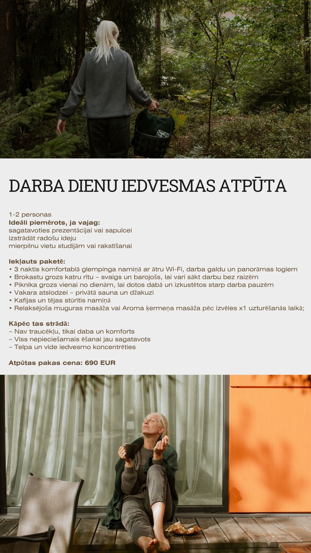 - 3 ночи в комфортабельном глэмпинг-лодже с быстрым Wi-Fi, рабочим столом и панорамными окнами